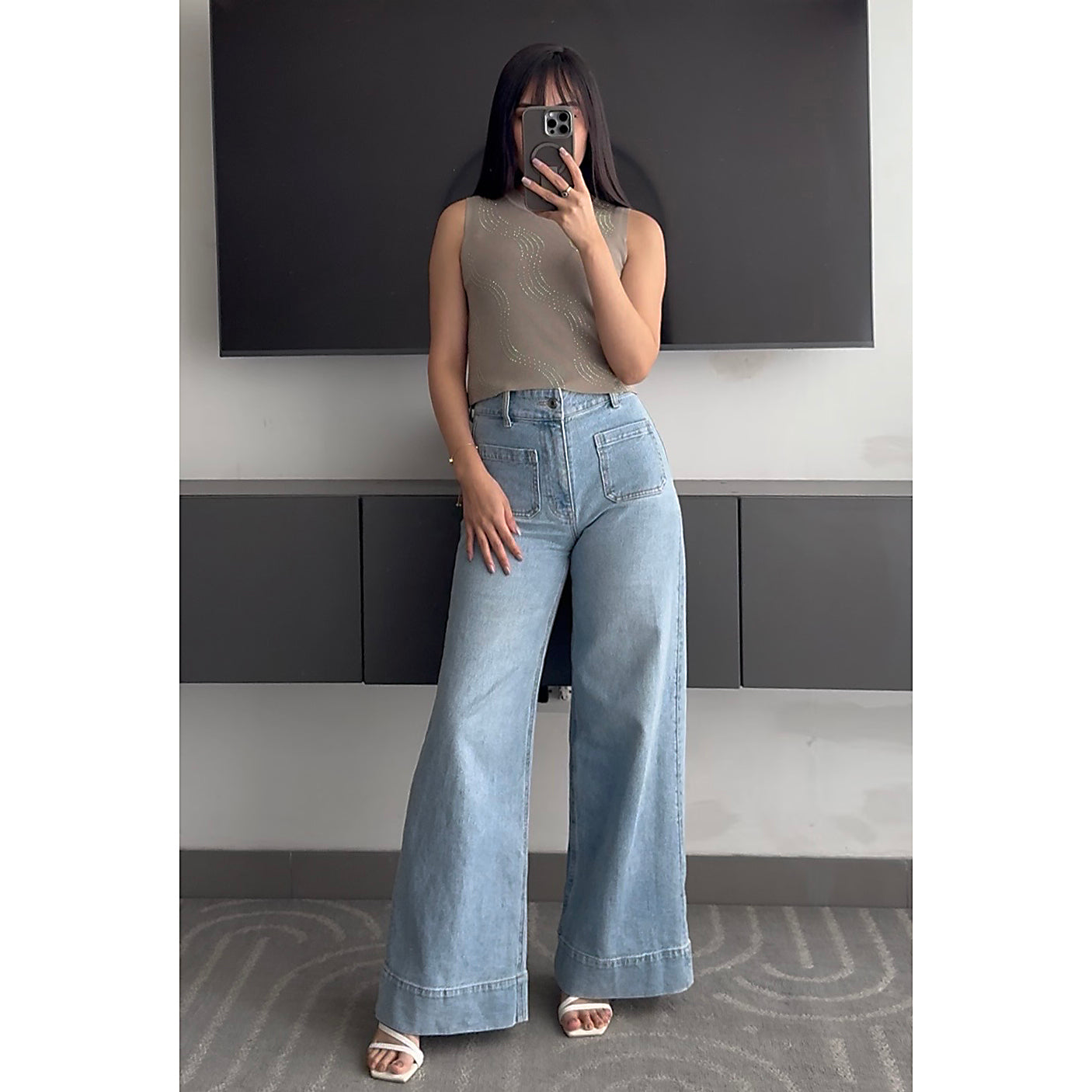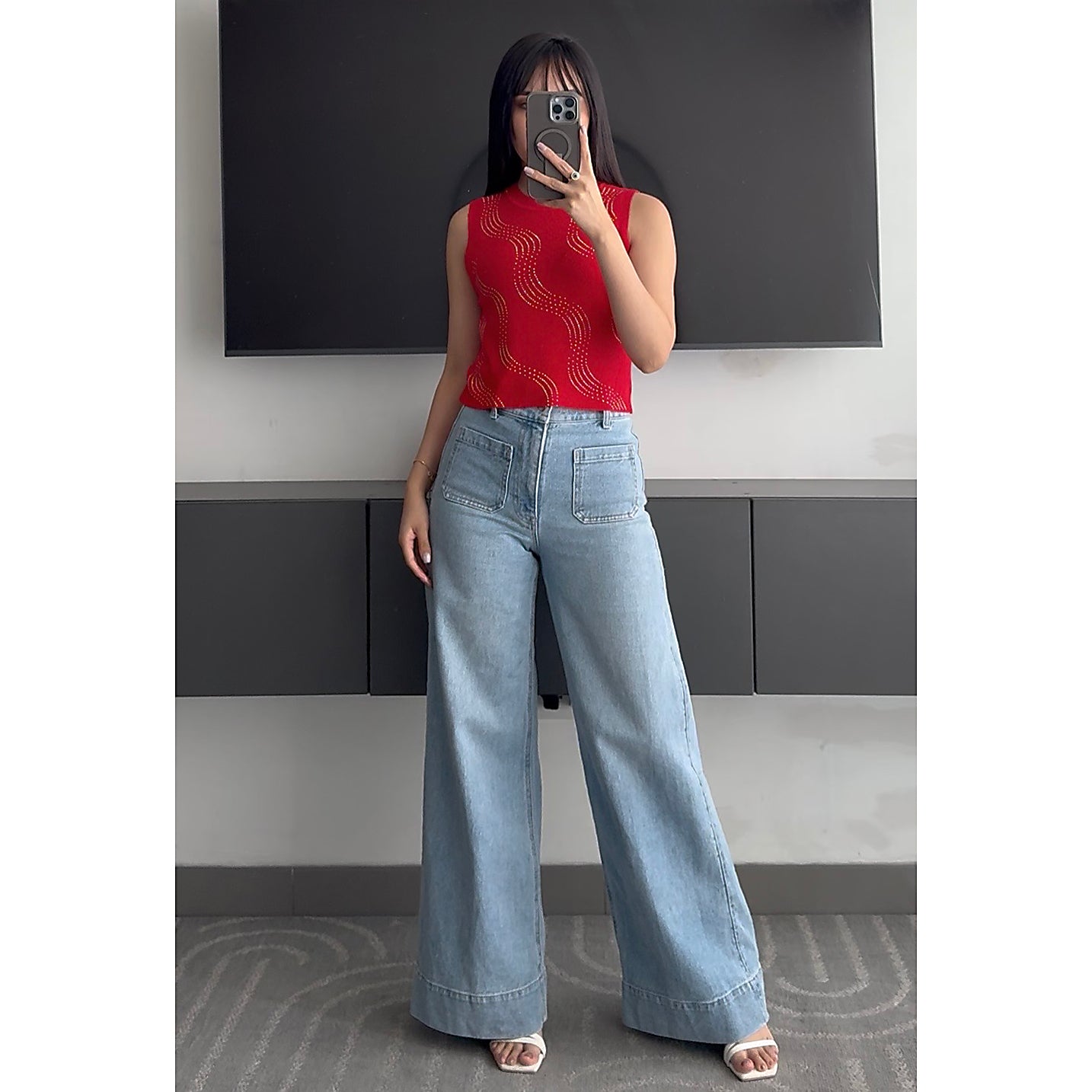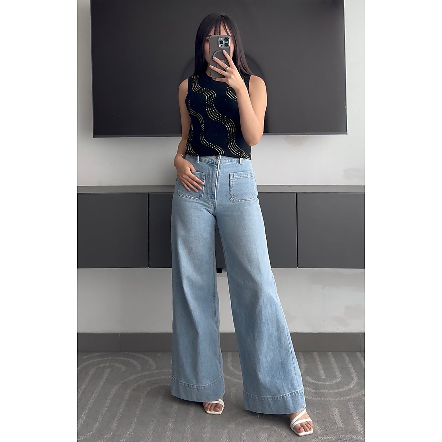 Polo de hilo stretch con detalles de tachas brillantes.